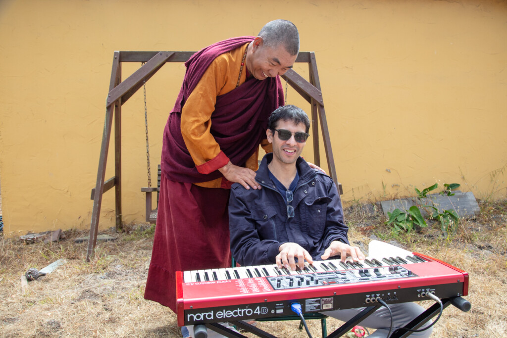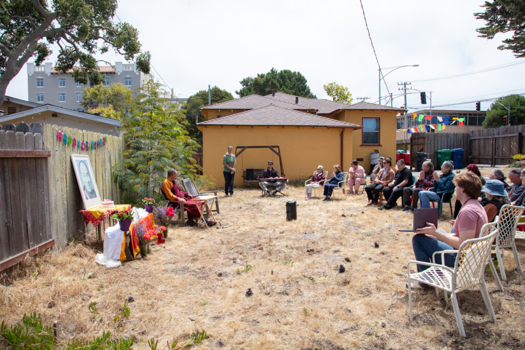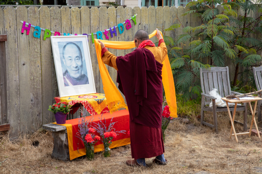 Yesterday, Saturday July 5 2025, we celebrated the momentous occasion of His Holiness the Dalai Lama’s 90th birthday in the MDC backyard. It was a beautiful occasion with prayers, music, and a khata offering along with food and drink. Many of the MDC Sangha attended after meditation. Everyone was very happy. Thank you so much to all of those in attendance and those who helped make the event possible. Thanks to the MDC President Rachel who worked so hard, Karma Palden (Miles) who also took photos, and my longtime friend Michael Martinez for the wonderful music played on the piano.