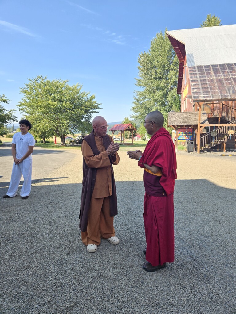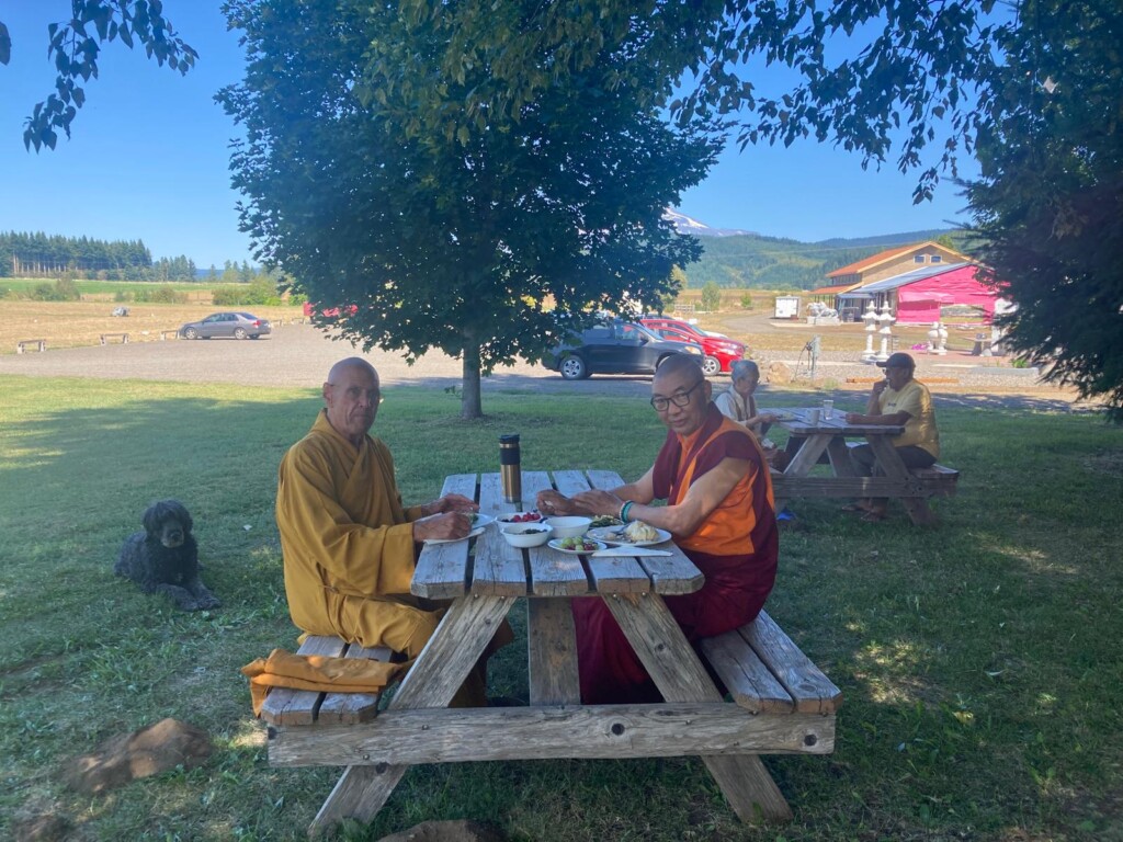 The retreat spanned over two weeks, with the first week taking place at the Northwest Tibetan Cultural Association in the city of Portland. The second weekend was held at the Mount Adams Buddhist Temple, also known as Trout Lake Abbey, in nearby Washington, which is the home of my Dharma brother Thay Kozen.