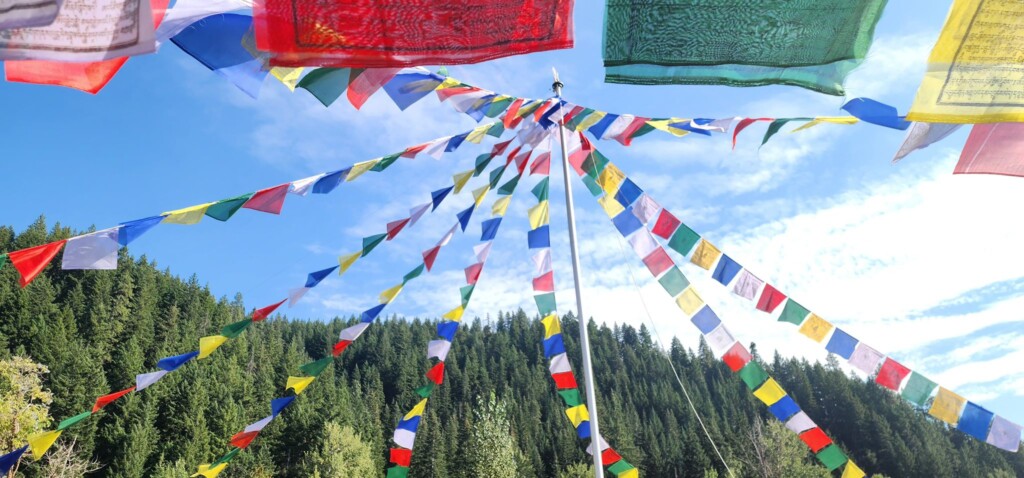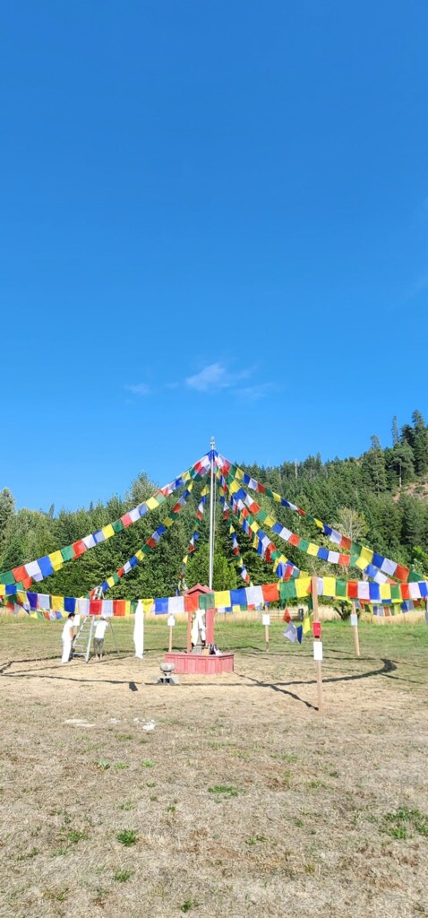 - After the conclusion of the Dechen Shingdrup, we hung prayer flags in the Mount Adams Buddhist Temple prayer flag pavillion. They will stay up all year.